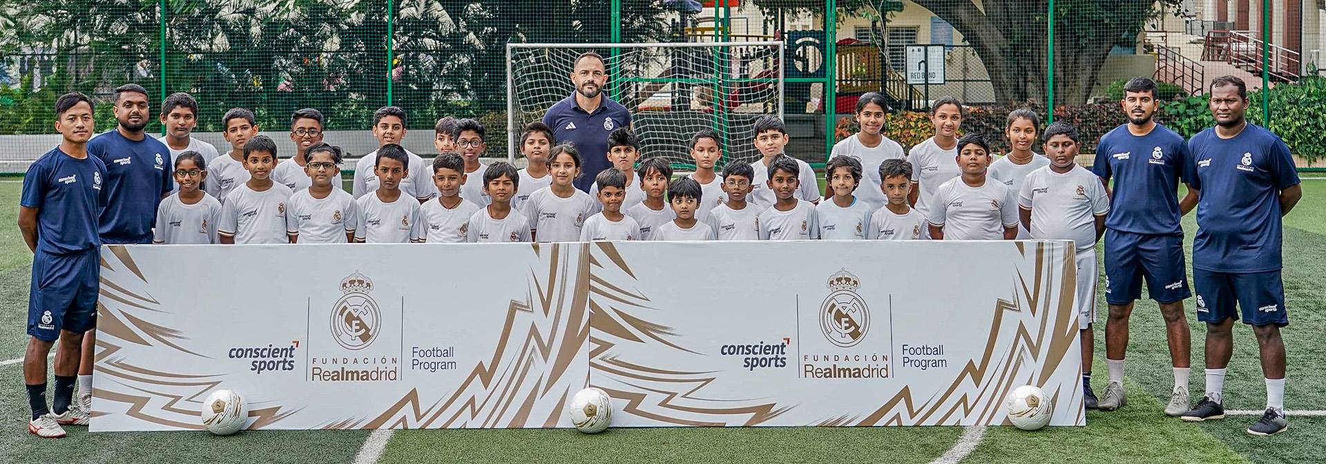 Welcome to a new era in grassroots football, where passion for football and shared values converge. Conscient Sports, a pioneering force in infrastructure, education, and sports, is proud to announce its collaboration with Real Madrid Foundation. Step into the future of grassroots sports with Conscient Sports and Real Madrid Foundation leading the way. Our collaboration is built on shared values and philosophies, centered around a commitment to values like motivation, integrity, and community. Together, we envision a landscape where all the participants live a unique experience under the guidance of Real Madrid Foundation methodology. At the heart of this partnership lies a deep alignment of values and philosophies. Conscient Sports and Real Madrid Foundation are committed to fostering a culture of excellence, integrity, and teamwork. With a legacy of success and a global footprint, Real Madrid Foundation brings unparalleled expertise and resources to the table, while Conscient Sports' innovative approach and dedication to grassroots development provide the perfect foundation for this transformative collaboration. Through our combined efforts, we aim to revolutionize the landscape of grassroots football, offering all participants the opportunity to train under Real Madrid Foundation Methodology. From state-of-the-art facilities to Real Madrid Foundation coaches, we provide the tools and support needed to live a unique experience combining football and values. Join us on this extraordinary journey as we unite to elevate grassroots football to new heights.